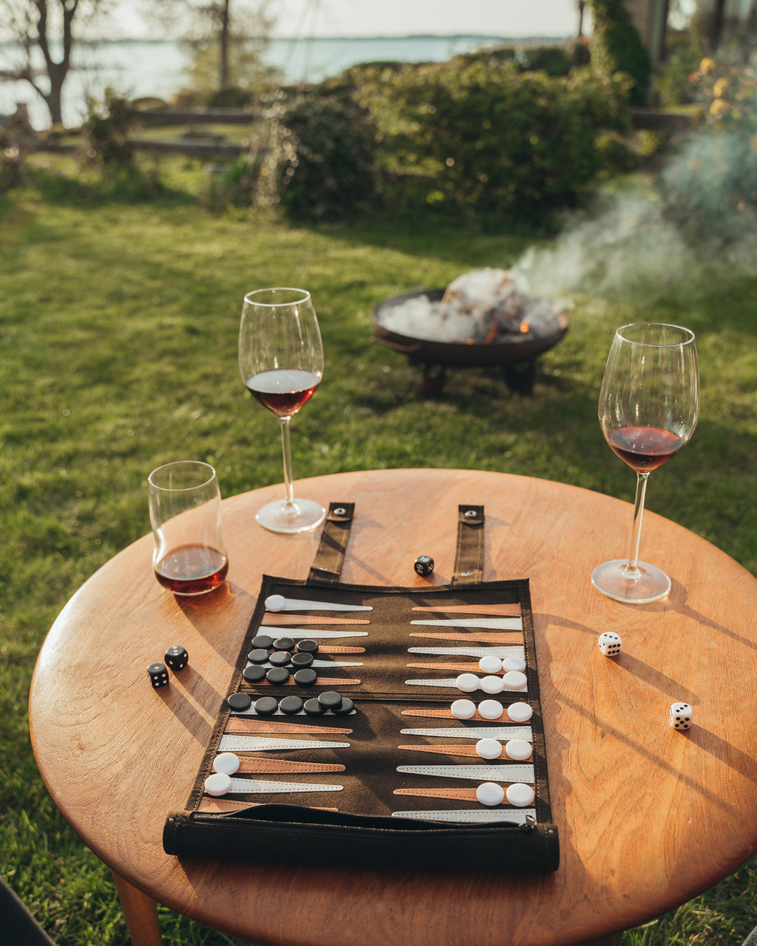Vi tilbyder i øjeblikket vores Backgammon sæt i tre stilfulde farver, som passer godt ind på ethvert sofabord.